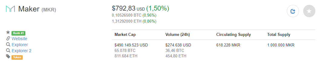 Circulating Supply: 618.228 MKR