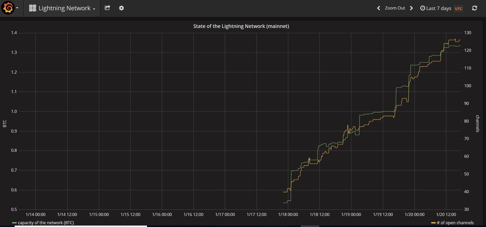 The implementation of LN nodes is gaining momentum. Currently LN has more than 67 nodes and 128 channels running on the mainnet with a capacity of 133758803 satoshis, about US $ 17,128.16 USD.