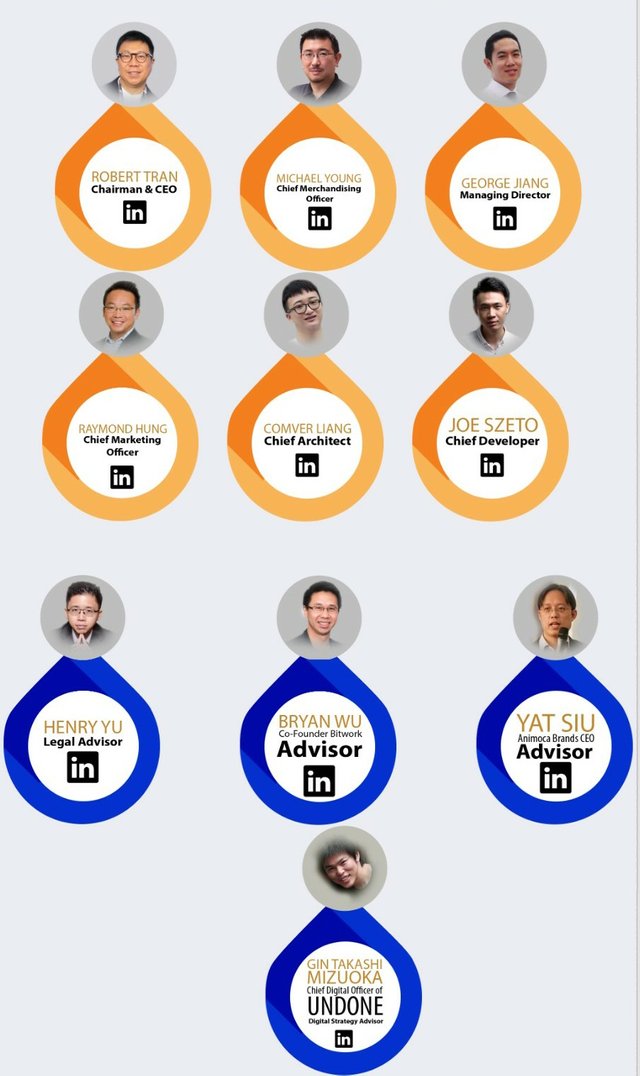 Robert Tran(chairman, CEO and co-founder), George Jiang(Managing Director & Co-founder), Michael Young (Chief Merchandising Officer & Co-founder), while the advisory team include; Bryan Wu, Henry Yu, Gin Takashi Mizuoka.