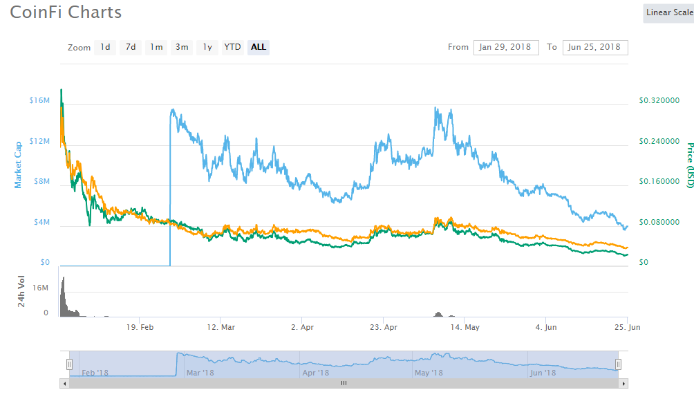 Good time to buy and gain good profit coinfi beat all time high means $0.31 so you earn 18x profit end 2018