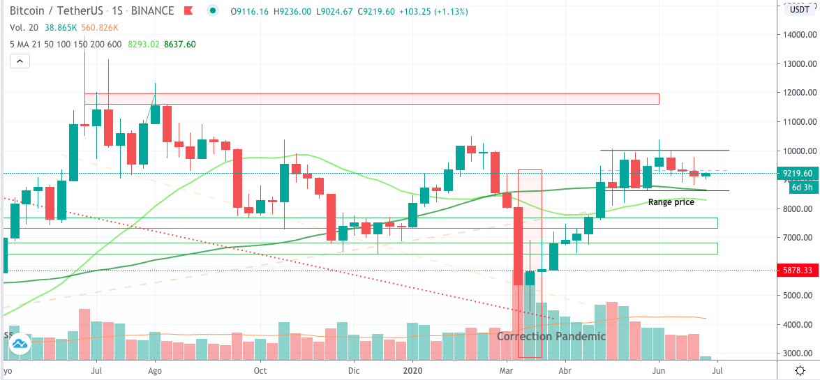 As we see in the price chart Bitcoin remains in a price range for the last few weeks.