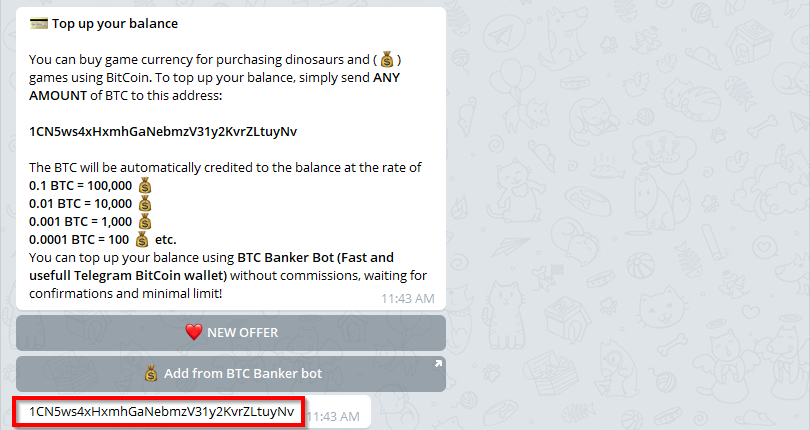 Thanks to an article like this I joined and put my own money in. What the promoters of these things love to do it gloss over the bad parts of the design and teach how great it is. If you don't successfully invite paying referrals you will likely never recover your investment. Payment points are intentionally hard to get to the point that I have just under $3000 in my payout balance but only 1500 payment points allowing me to withdraw approxiamately $6.00 USD. XD wonderful, thanks to advocates on Steemit I got scammed because my referrer never mentioned payment points (author here hardly did, with intention to dupe you. several paragraphs on how to buy bitcoin though. xD) The bot itself never mentioned payment points to me until my first attempt to withdraw, and then the system is so poorly explained that I put in money thinking that it might be alright. But no, it's a travesty. As the author said 1 BTC=1,000,000 Payment Points and I said I have 1,500 Payment Points=$6.00 USD. Wow, That works out to $4000 worth in their evaluation just to receive something you've already earned and put money into before. If they didn't take unbearably long to receive, as mentioned in article 1-3 for free every day. I've only gotten 1, 99% of the time. But wait, they offer VIP dinos so you can earn payment points. Ha, what a joke though, 600 Points or close to 600 days of consistently collecting your daily bonus to buy the cheapest one which will then only bring you 3 payment points every day...for 300 days, then they die. 300x3=900 so 300 agonizing days to get 300 more than you initially put in. Just deceptive mechanics created to scam you but also a system in place to encourage people to deceptively market the game so they can make back what they put in and/or spend nothing but profit off of making it sound profitable.