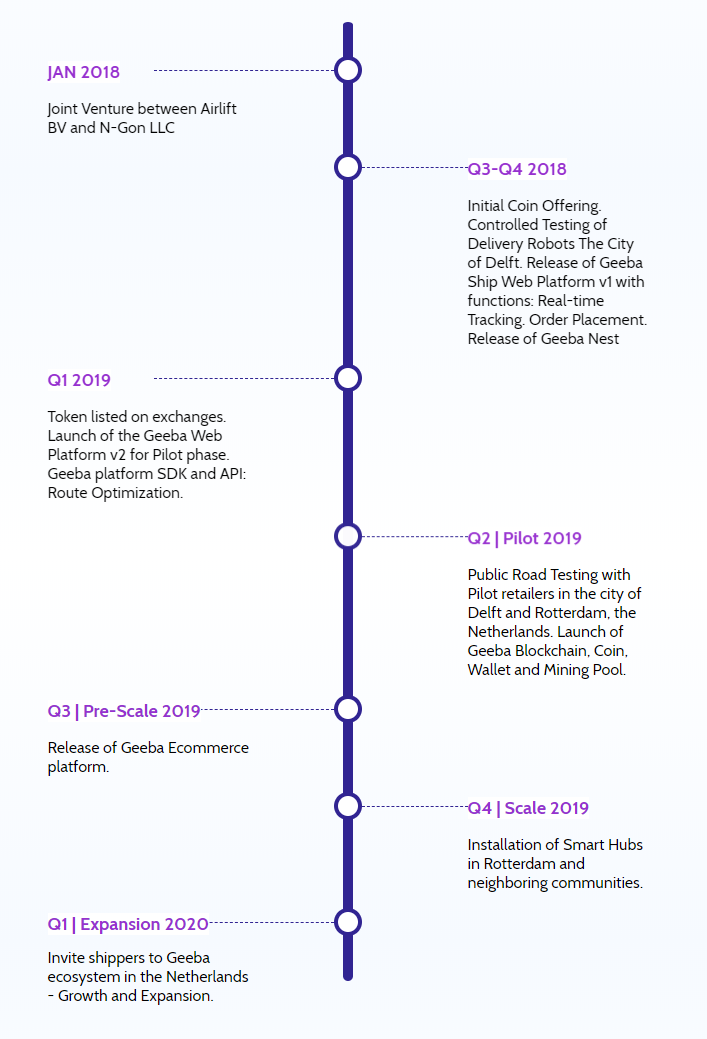Geeba is developing a decentralized ecosystem enabling businesses to cut down expenses of local deliveries powered by blockchain, autonomous vehicles and smart hubs. The ecosystem acts as a growth enabler to empower retailers and provide limitless scale opportunity to shippers with a community centric approach.