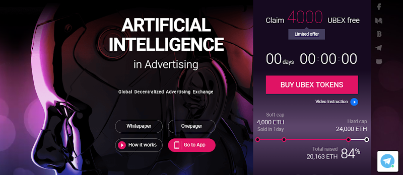 Ubex is a global decentralized advertising exchange where companies advertise effectively, while publishers profitably tokenize ad slots on their resources.