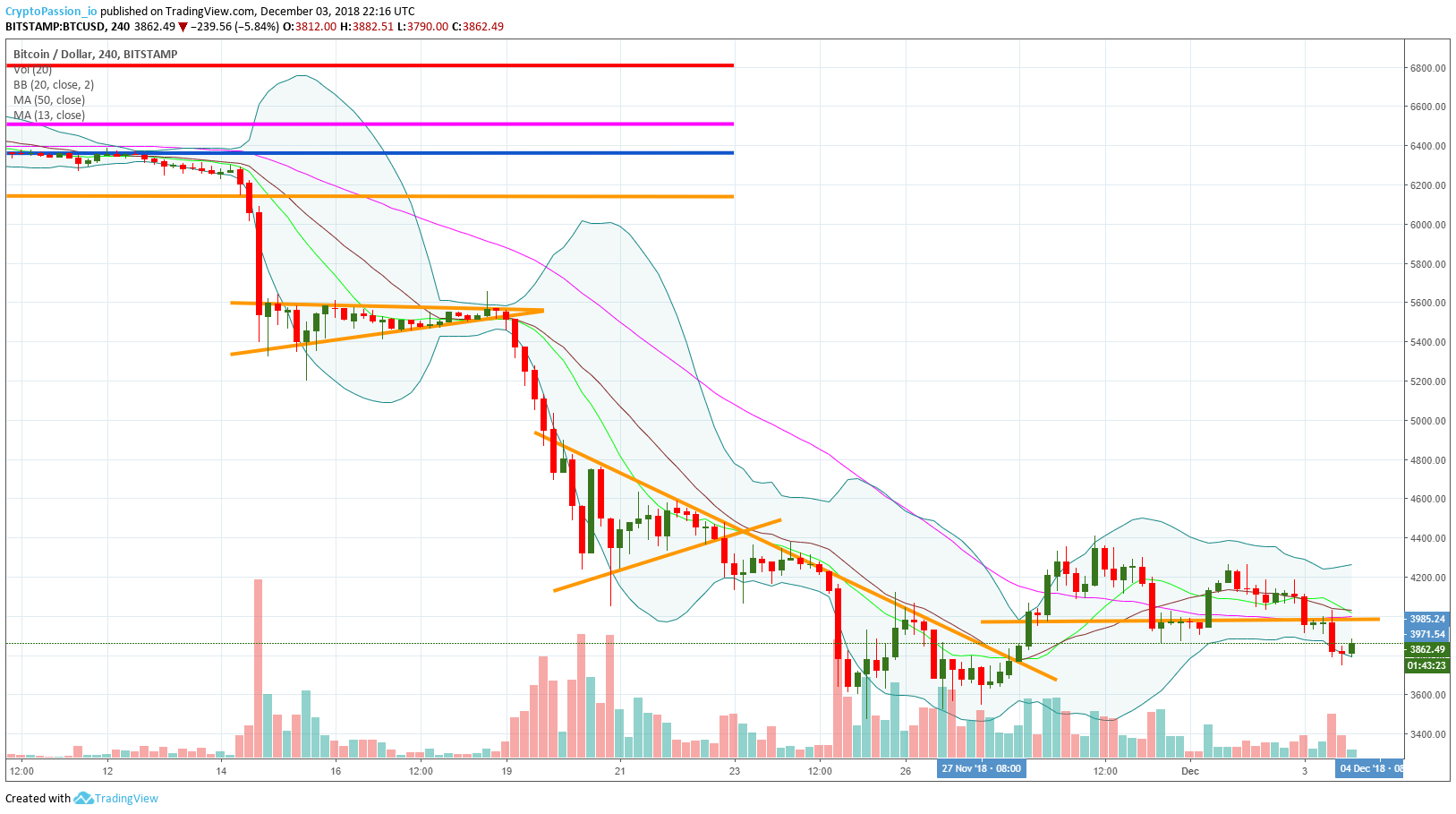 The support line on the BTC has been broken. We still have a little chance to go back upper of that line with the next candles but if the break is confirmed I expect a new correction phase on the BTC. It is a little bit too early to do trace it now but the next support line will be the diagonal line of the triangle.