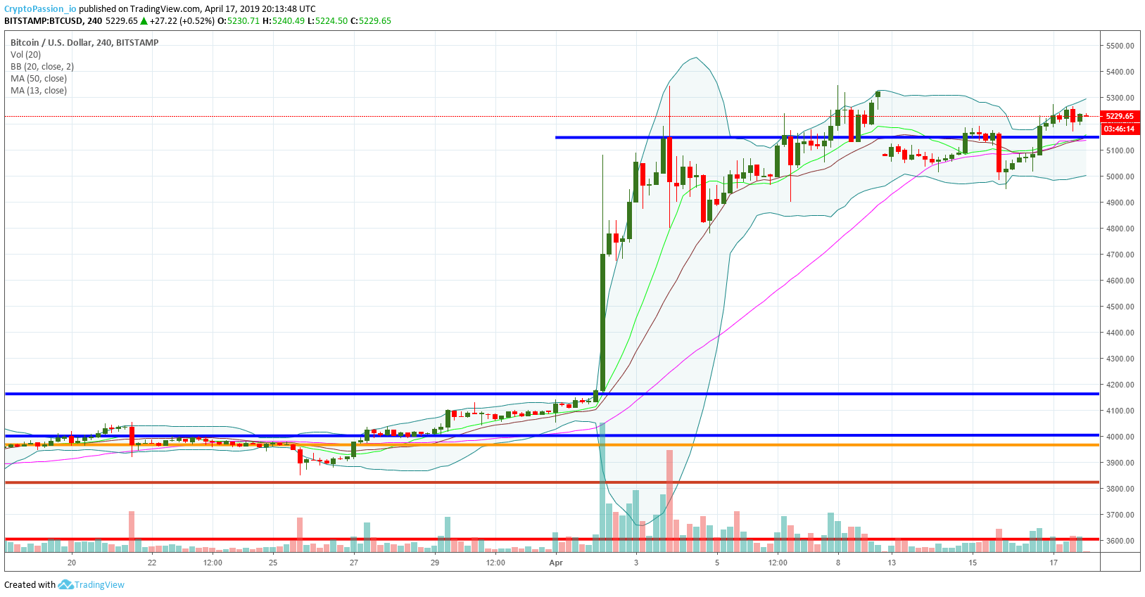 Since the little Break Out that we had yesterday where we broke the resistance line at 5150$. It is a positive sign as apparently, the sellers are not able till now to even go test back the support line. What I would like now is that we have a second Break Out, even small one, to take some distance from this support line.