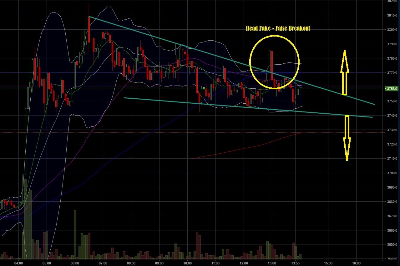 Please notice that this kind of trade is very risky and that you have always the risk to have a false breakout (head fake) like the one I put in yellow. However, if you know how to trade this kind of move, it can be very profitable.