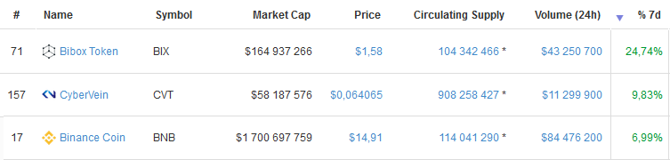 10 M+ $ volume in last 24 hours, top three: