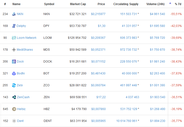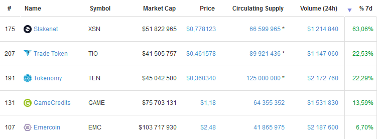 1M $ - 10M $ volume in last 24 hours, top ten: