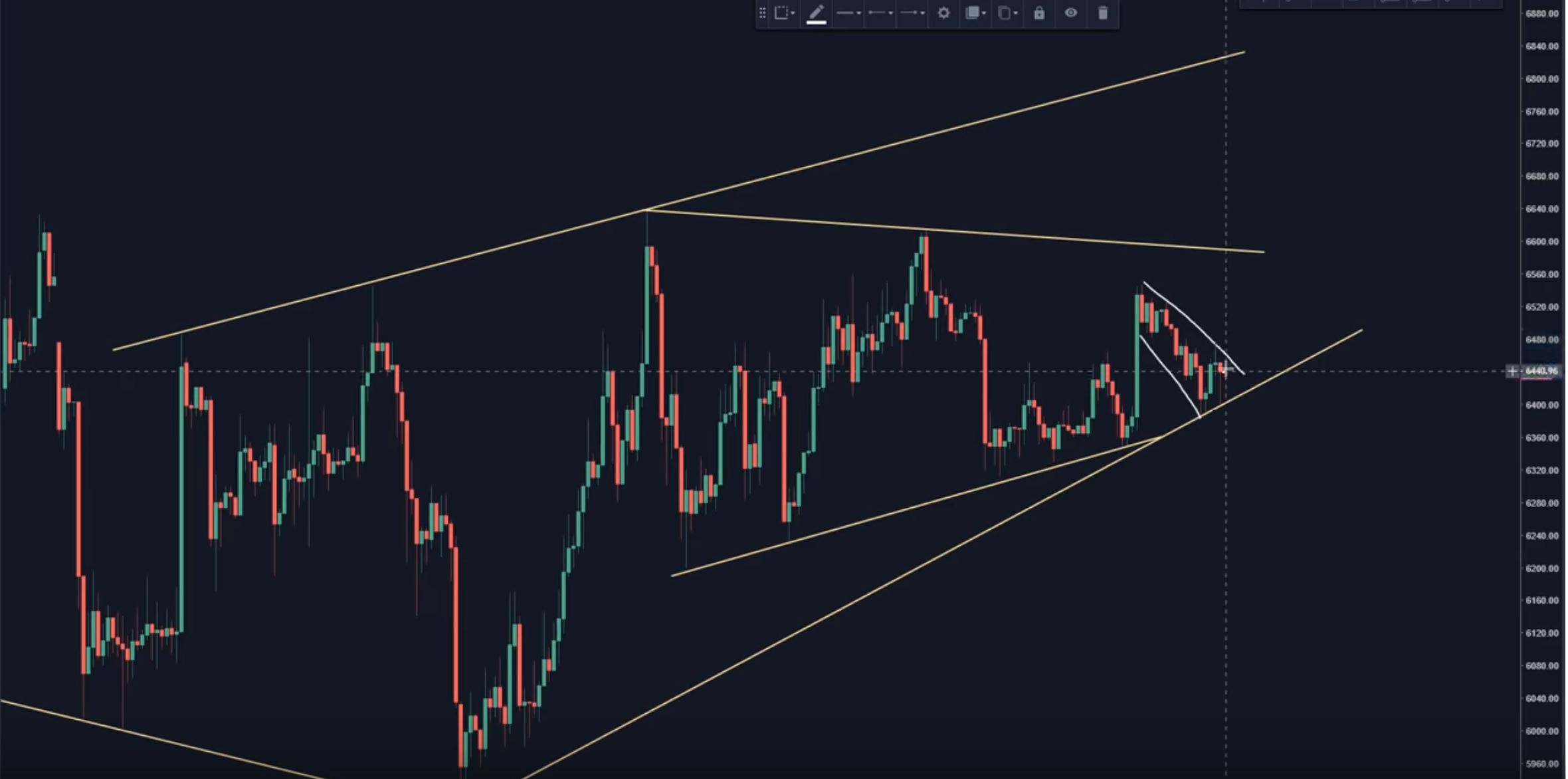 or Finally, the last and least probable scenario would be it goes to $7700 and then Bam back down and cracks the low of $5750 (this can take more than a month)