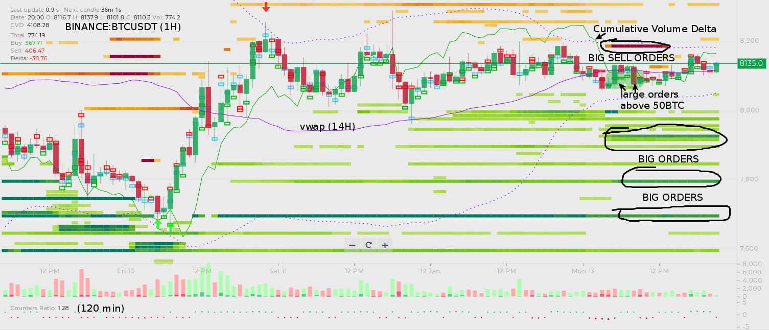 Estas ordenes de compra grandes que entraron hace unas horas podrian indicarnos que el precio intente testear los 8400 nuevamente.