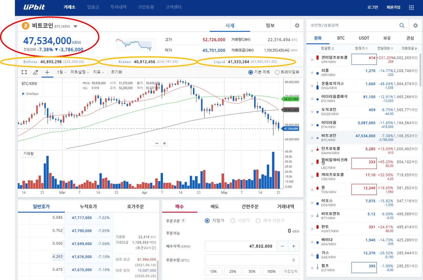 어제인 5월22일 오전 업비트 거래소에서 비트코인 김치프레미움이 해외 거래소에 비하여 15% 가량 형성되었고 5월 23일 오늘 오후에도 10%이상이 꺼지지 않고 계속유지되고 있습니다.