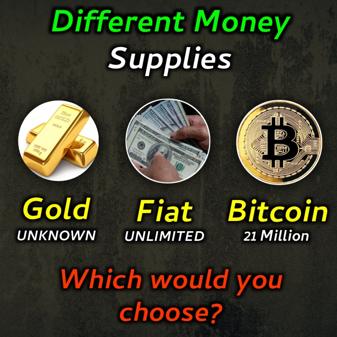 The #fiatcurrency has unlimited supply, Gold has unknown, near to unlimited supply but #Bitcoin has only 21 Million supply.