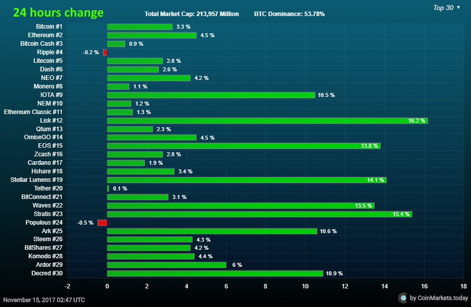Green Lights on CoinMarketsToday Nov 14 2017