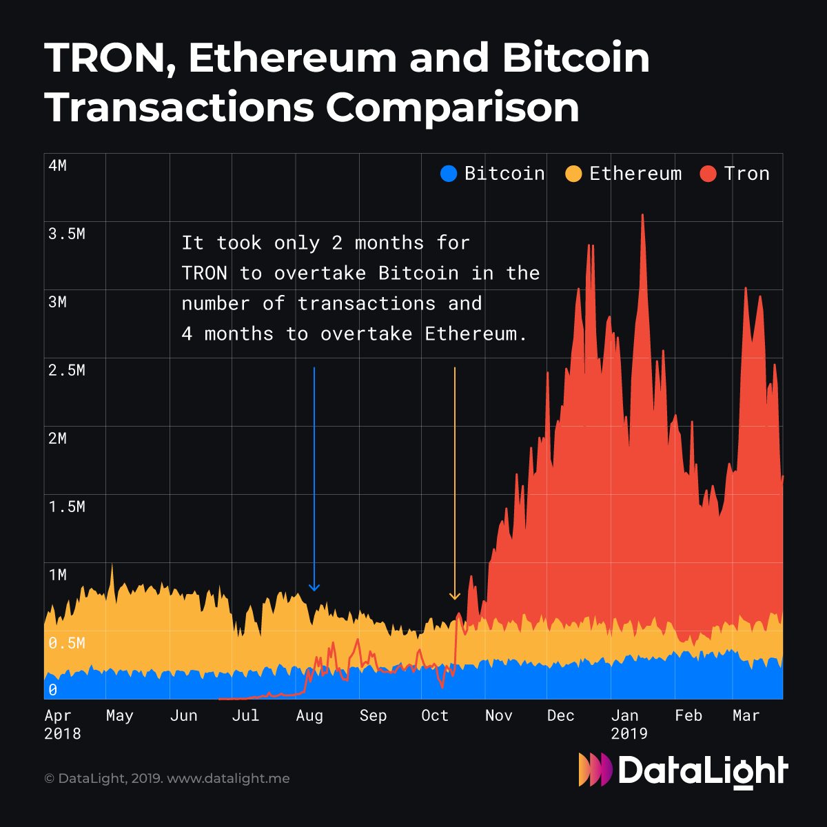 His project is now an undisputed leader in the number of transactions, and it took just a couple of months for TRON to overtake BTC and ETH!