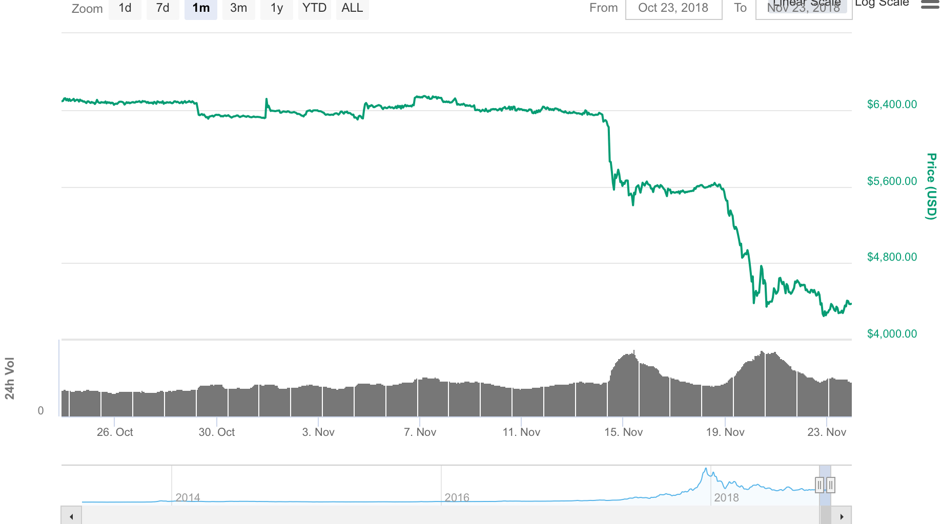 Bride of Crashenstein (Crypto Chart Art, BTC)dogenationz (29)in #bitcoin • 7 years ago (edited)Bitcoin/USD 10-23 to 11-23, 2018. Stairway to 4K. Original chart (CoinMarketCap): #crypto #chart #art #btc