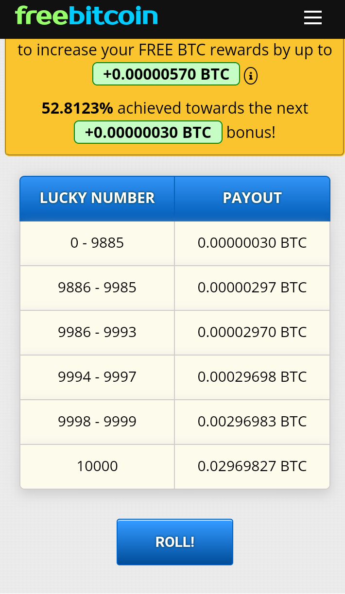 You can compare the number in above given table or read the table there you can see what number will worth what amount of satoshi. If you roll 10000 you can earn 0.0296 BTC for free and if you roll between 9998 to 9999 you can win 0.00296. similarly you can see other reward on the table .