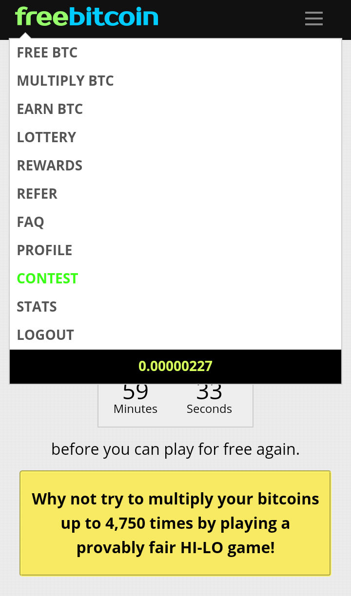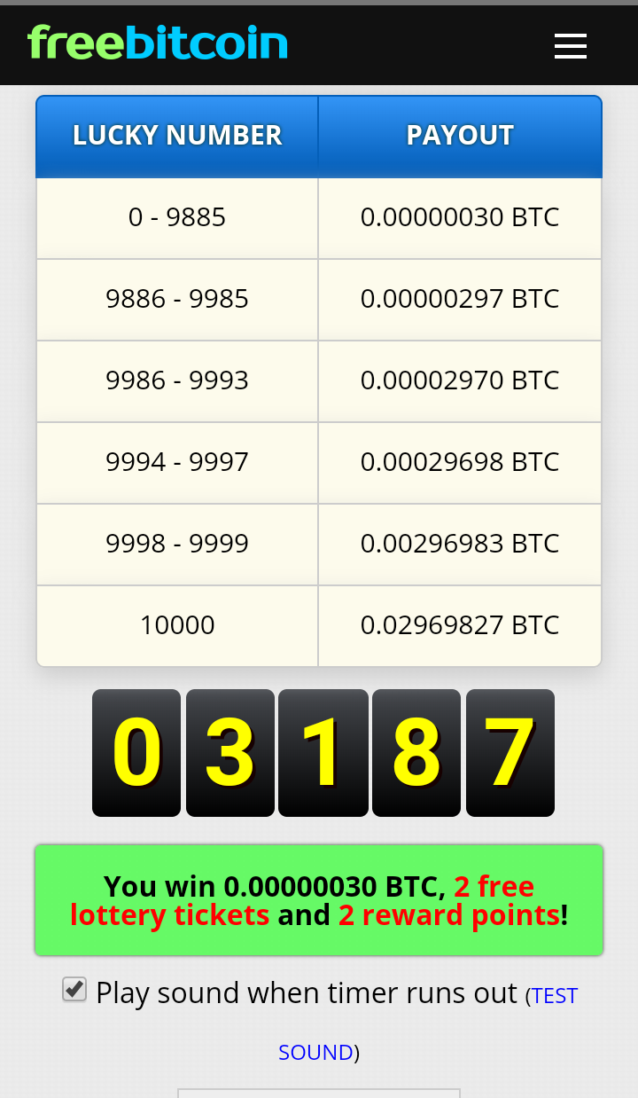 As you can see I rolled 03187 and earned 30 satoshi. After you claim the reward you will be than count down to next one hour. You can come back after hour and claim for BTC again.if you did this for at least 12 hour a day you can earn minimum of 360 satoshi. And if you roll the lucky number you can even earn 0.0296 BTC at once.