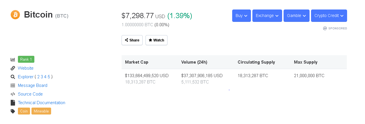 I'm glad to see that the price of bitcoin is at $7,298 right now. I'm actually just glad that the price is still above $7,000. I am hoping that it goes up, but I actually haven't checked the charts yet. Hopefully it will stay higher than $7,000 from now on.