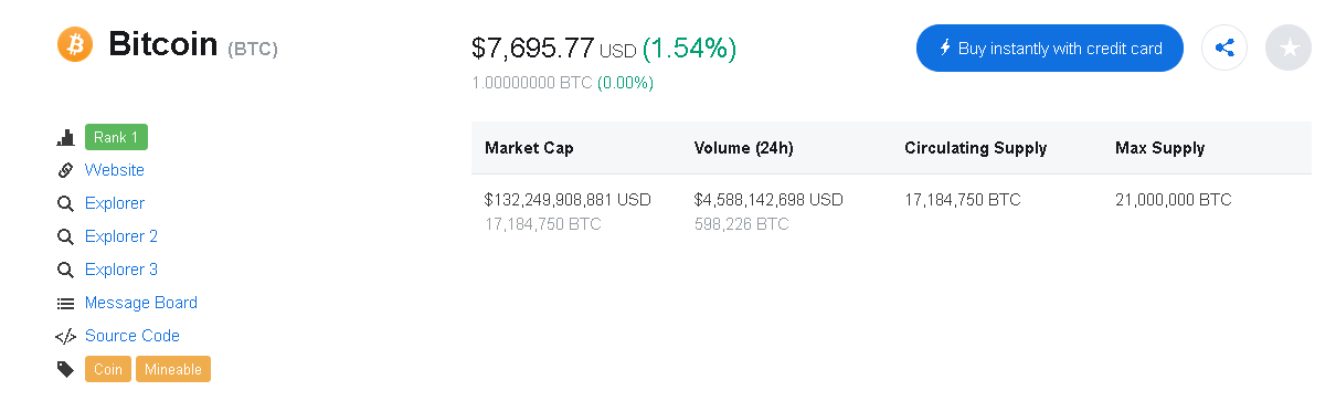 So the price of bitcoin was above $8,000 a few days ago, but yesterday it got pretty low. Since then the price has gone up by 1.54% so it's still putting up a fight. Right now the price is up to $7,695 so that's a good thing.