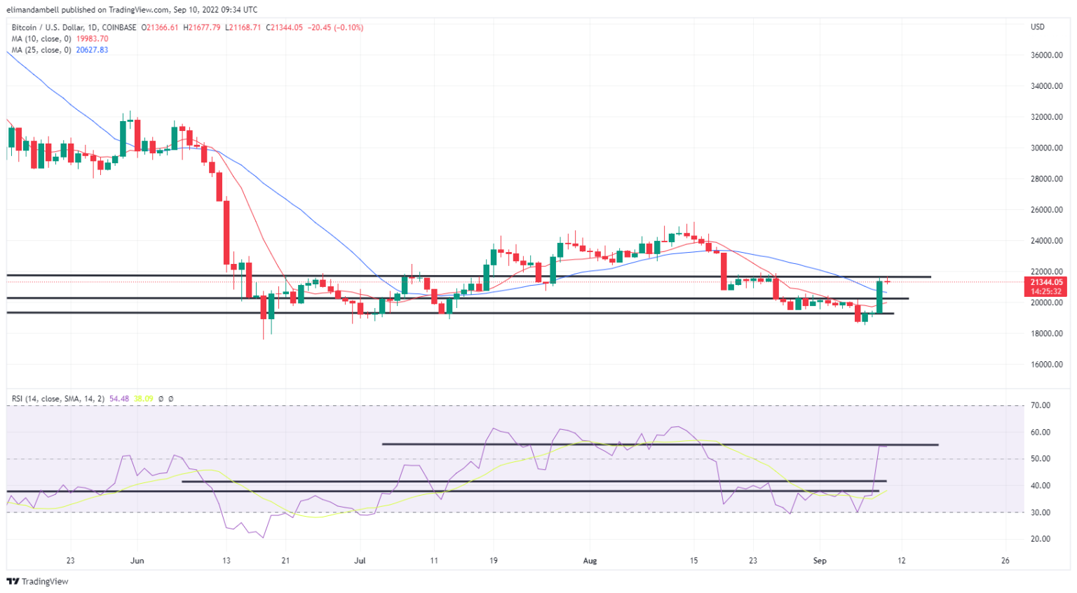 As of writing, bitcoin is now trading at $21,356.34 as momentum slowly returns, however until the RSI moves past the aforementioned ceiling, we might not see any further substantial gains.