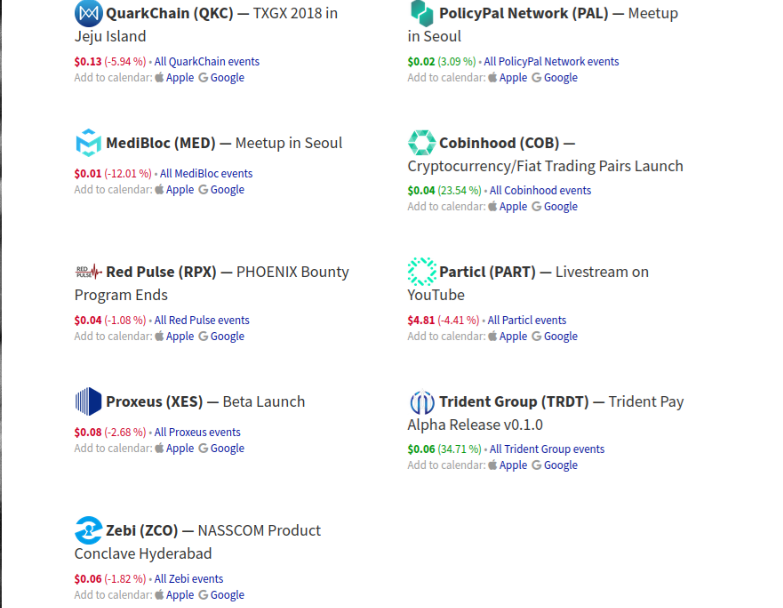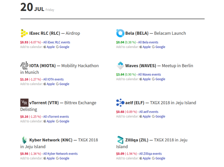 EVENTOS CRYPTO PARA EL 20/07/2018