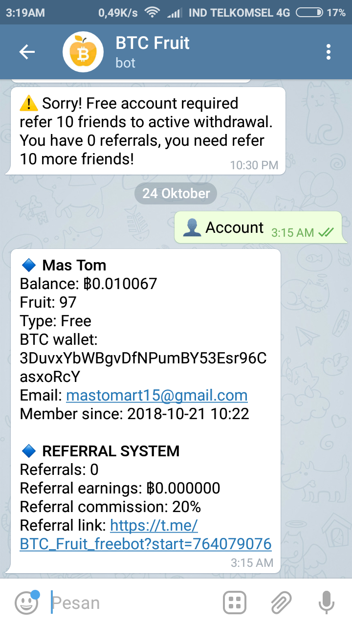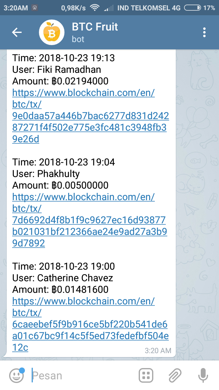 Minning bitcoin from telegramfajritomimemet (34)in #bitcoin • 8 years ago Do you want it?? This is minning bitcoin in telegram, and you know?? This is legit. Paying minning. I get in.. Link klik here ... Example minning #minning #steem #ksi #legit