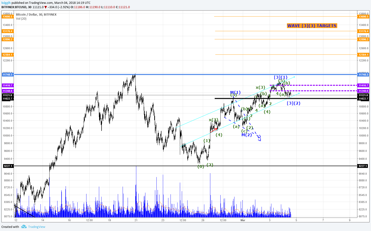 - @lordoftruth: We will most likely hit the 11'750 and move to 12'200 on Monday. If we are rejected by 11'750 we are retesting 10'000-10'500 area before rising again. Expected trading for today is between 10'500 and 12'200.