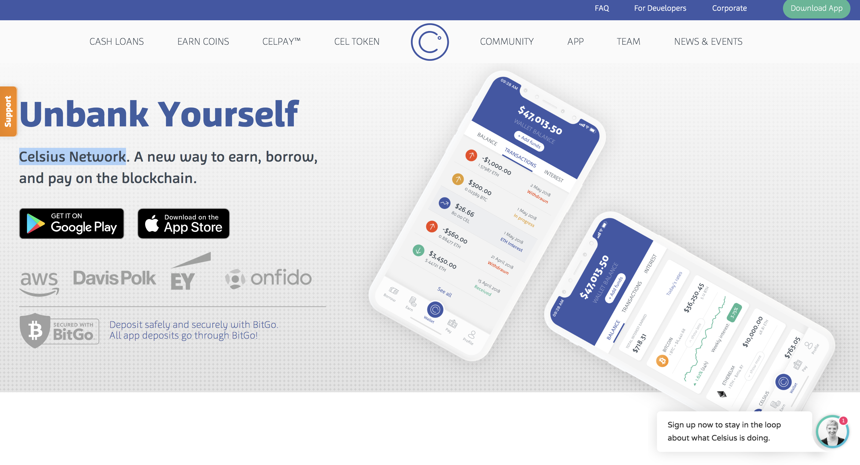 Celsius Network helps you unbank by providing crypto loans and services through it's mobile apps. They launched their services in July 2018 and have processed over $1.2b worth of cryptocurrency loans with $122 million assets under their management.