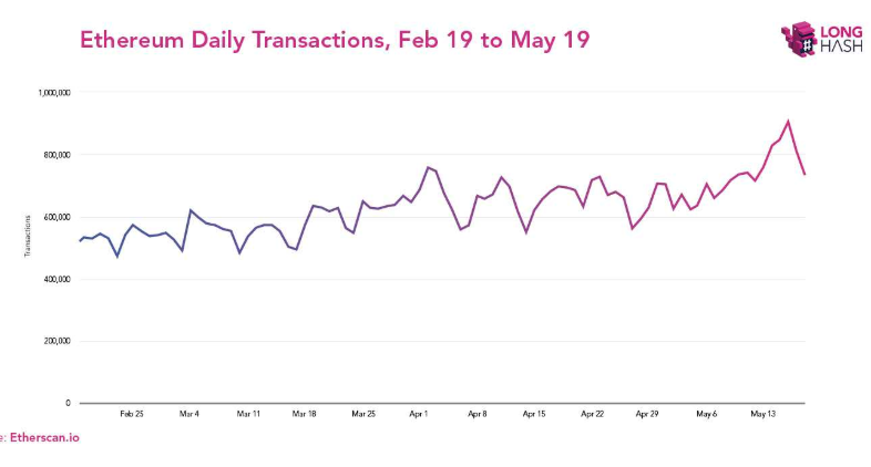 As you can see the number of transactions on the Ethereum blockchain continues to rapidly grow in 2019.