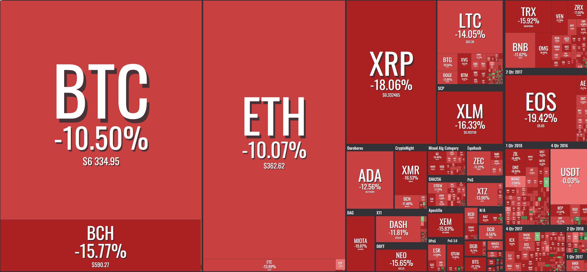 According to CoinMarketCap, Bitcoin (BTC) is currently trading at $6,123, down -9.25% in 24 hours. For the week, BTC price is down -14.47%, and for the month, Bitcoin price is down -5.15%.