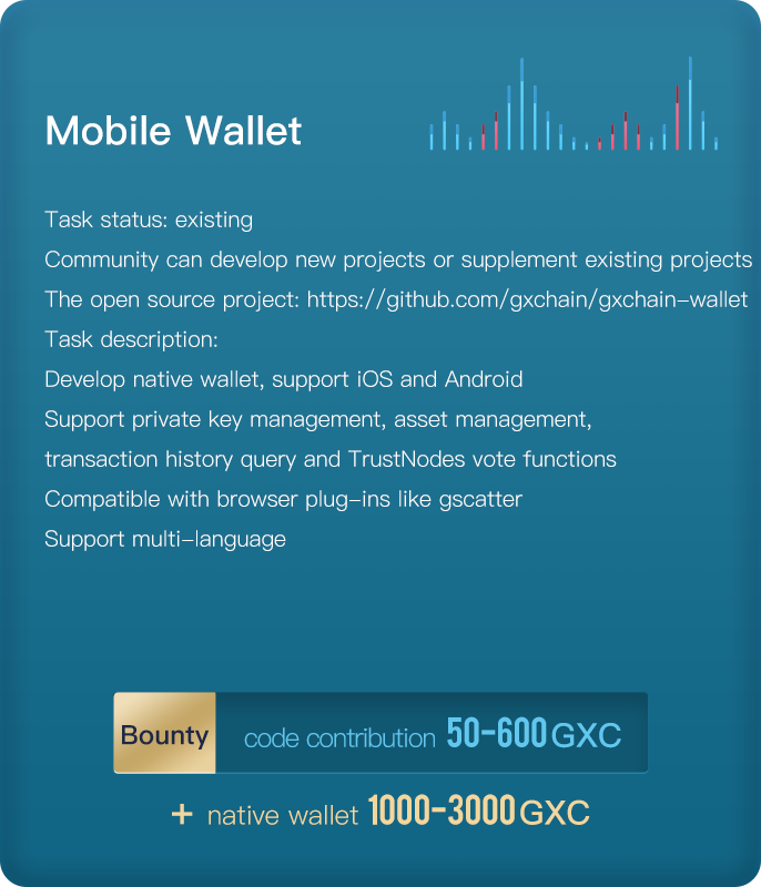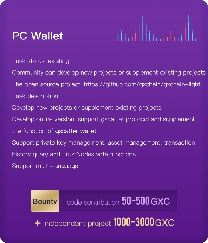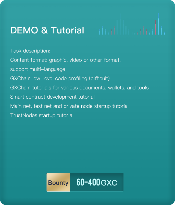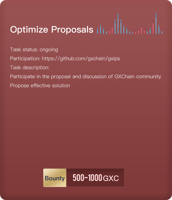 GXChain foundation has right to be informed for task termination or delay. Task bounty is not available for unfinished projects.