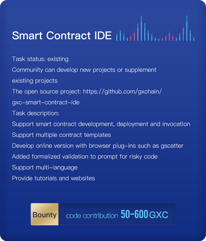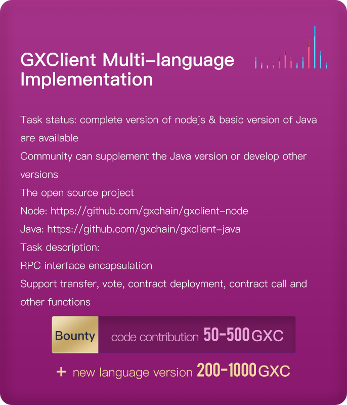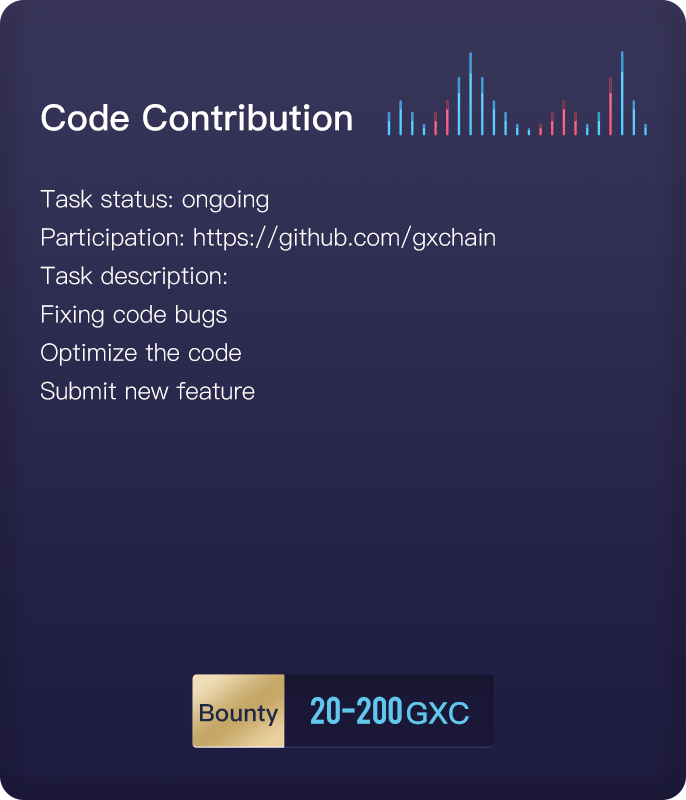 In order to establish a quality community in which everyone can be highly involved and encourage more people to participate in the development and governance of GXChain, GXChain recently officially launched a technical community incentive scheme. The GXChain foundation will dedicate 1,000,000 GXC to long-term building incentives for the developer community. Hope community members and supporters can actively participate in and jointly promote the construction of GXChain technology community.