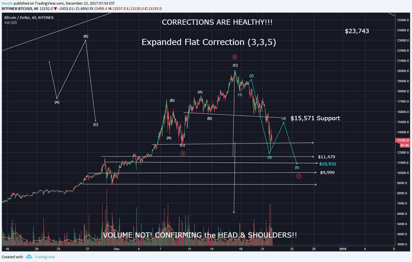 I see a lot of people getting freaked out right now...haejin has been very clear to maybe take some profits on the way up so you have dry powder to buy on the major dips....think about this guys...the NYSE just submitted a request to form a Bitcoin ETF including Proshares...The investors at the CME and CBOE are salivating right now and will pick up these coins undoubtingly , even if we go to $4000 or $2000...the mad rush into the market by HUGE investors hasn't even begun...this is an opportunity of a lifetime. Don't let this fool you into thinking it's dead...hope you guys are doing well and BTFD stay deversified....thanks for the great TA haejin as always