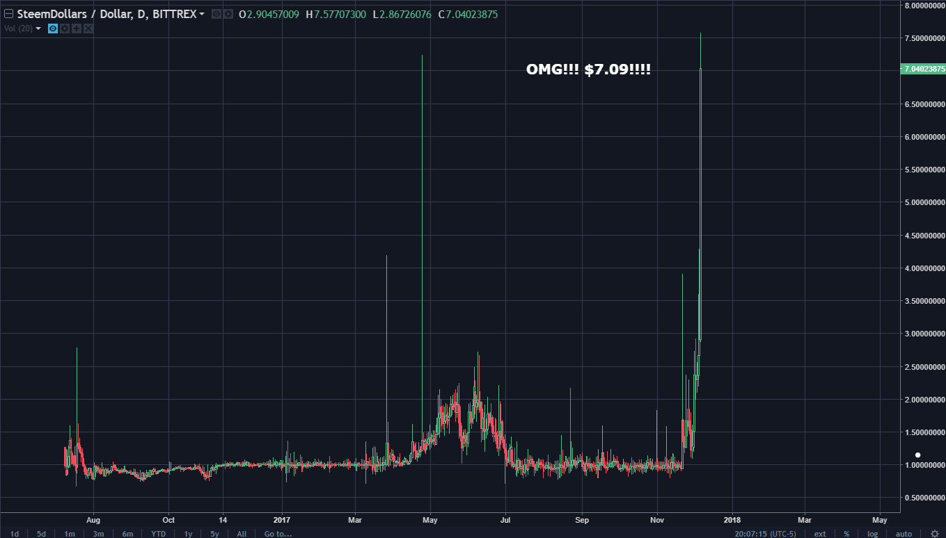 Meanwhile SBD is now $7.09 and I SEE THIS AS THE LEADING INDICATOR FOR STEEM!!!