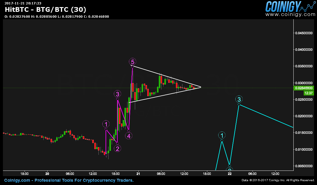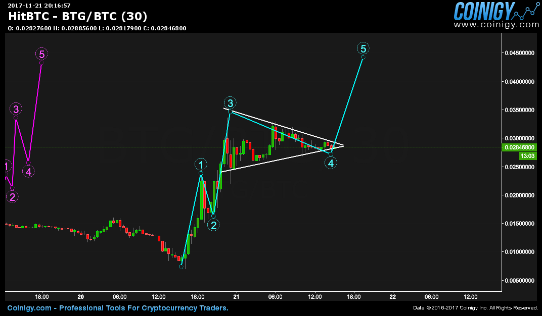Here is ZCoin (XZC/USD) and look at the Cup & Handle pattern that executed beautifully! Then, price surged twice and wer're now on the second surge. After this corrects, $45.85 should be next.