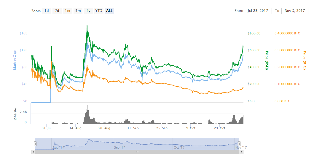 Bitcoin Cash price trend can't be ignored. Some time ago it only worth US $350 but now it is valued at $650. However its uptrend is still going strong and there are less chances of major corrections in BCC price. In only one day its value increases by 16.17%.