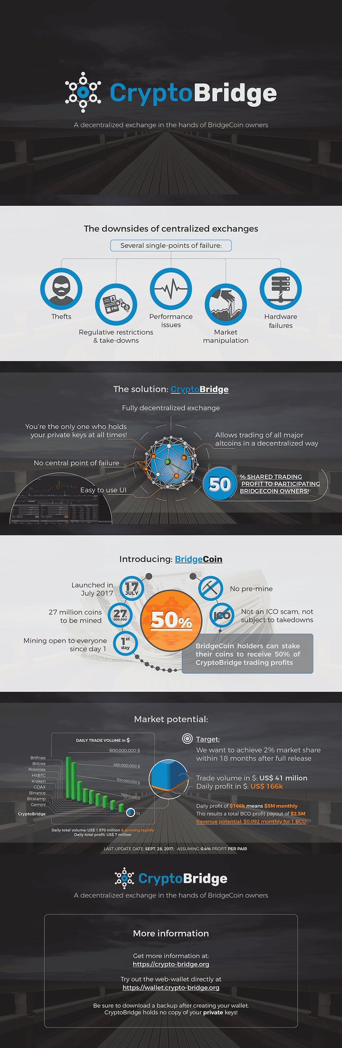 Manage exchange failures: Switch to a Decentralized exchange like CryptoBridge