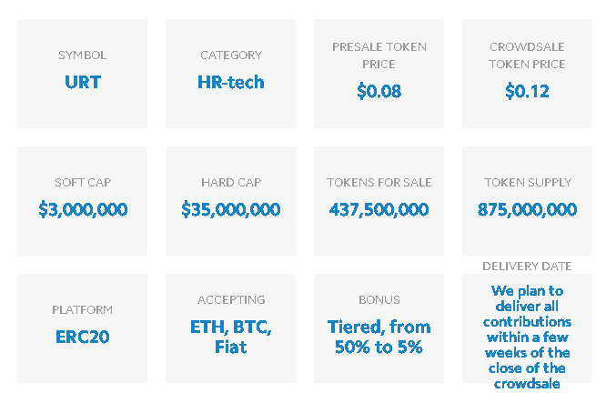 As with any other ICO, the company will issue its own currency, the URT token, which is based on the ERC-20 standard.[https://en.wikipedia.org/wiki/ERC-20]