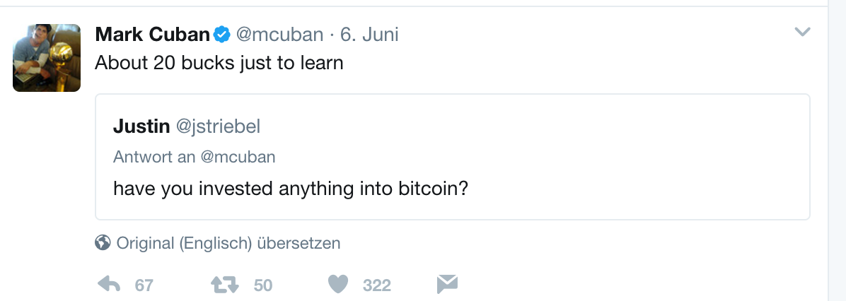 As you probably have heard, Marc Cuban tweeted that Bitcoin was "a bubble" about to burst due to greedy investors trying to get rich quick: