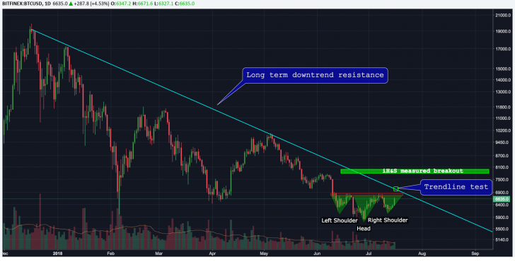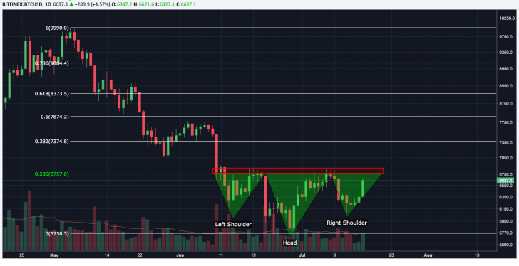 Bitcoin appears to be building momentum for a price rise after defending $6,000 but there are technical hurdles still present as a formidable challenge at this time the worlds most valuable currency is changing hands at $6,689 on Bitfinex and looks to be gaining steam for another test. So while the bulls may feel a possible inverse head and shoulders breakout they are cautioned against being too ambitious. The area between the $7,000-$7,100 hosts more technical hurdles that need to be penetrated in order to prove the Bull Case.