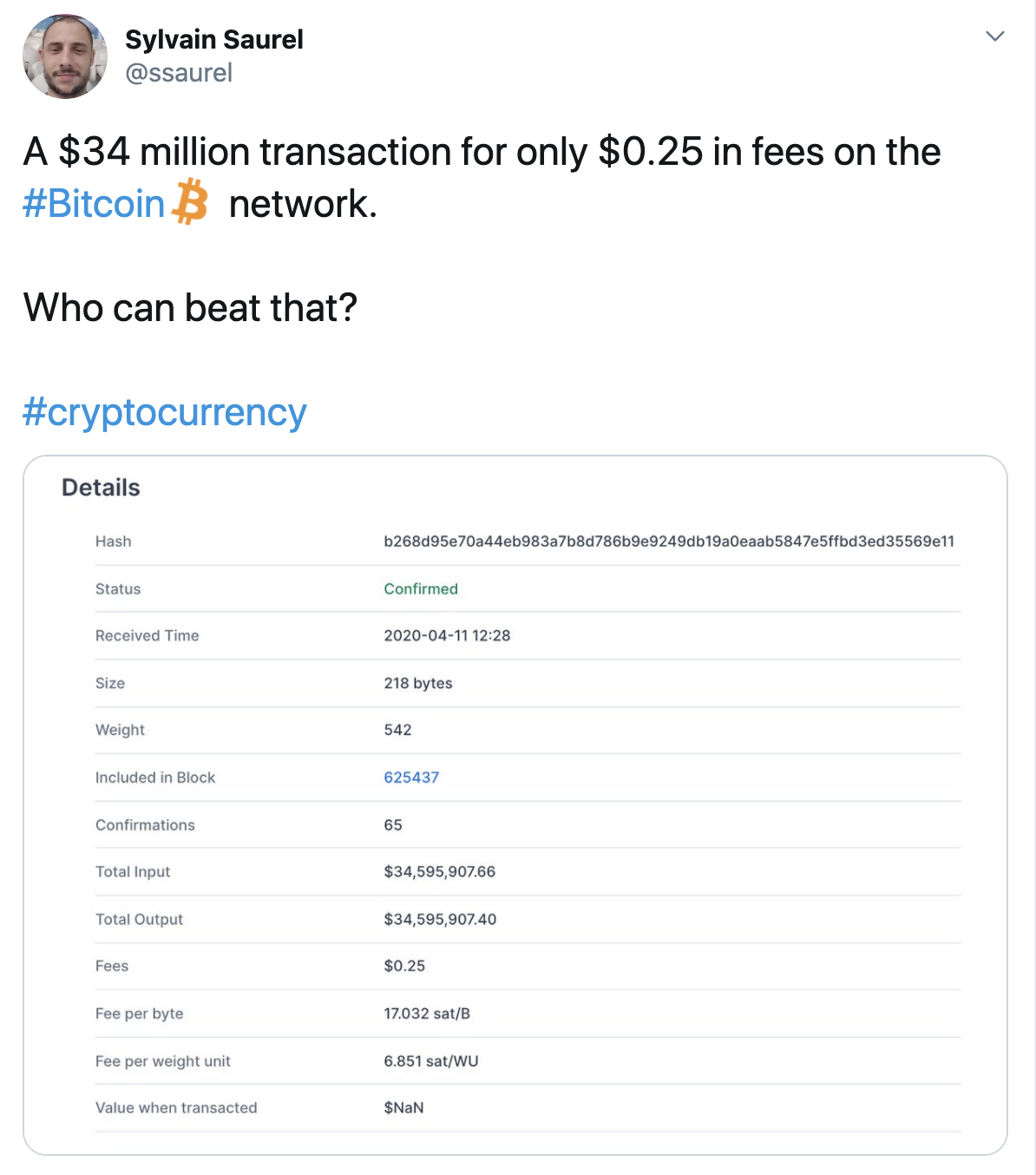 Secondly, unlike other types of financial transactions one might make with fiat or gold, bitcoin fees are not directly correlated with higher transaction fees. That much is evidenced by the following two tweets.