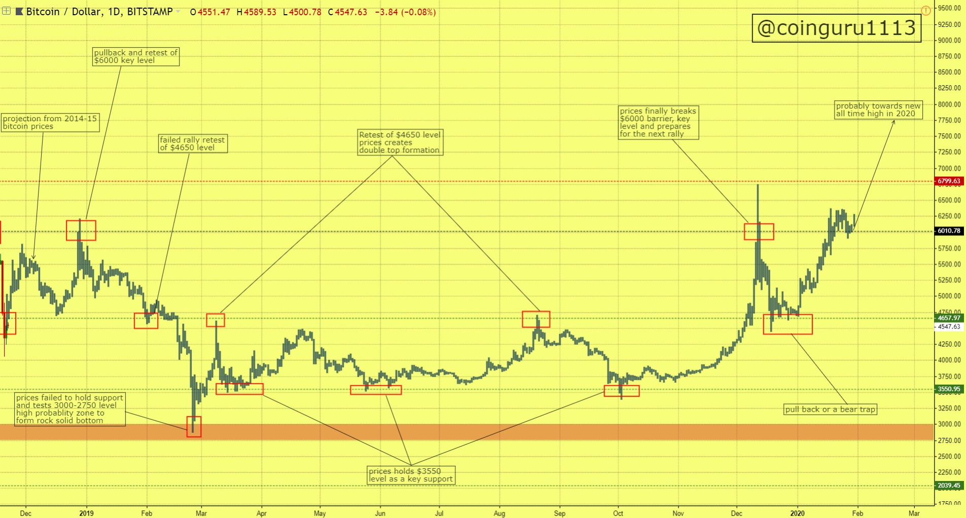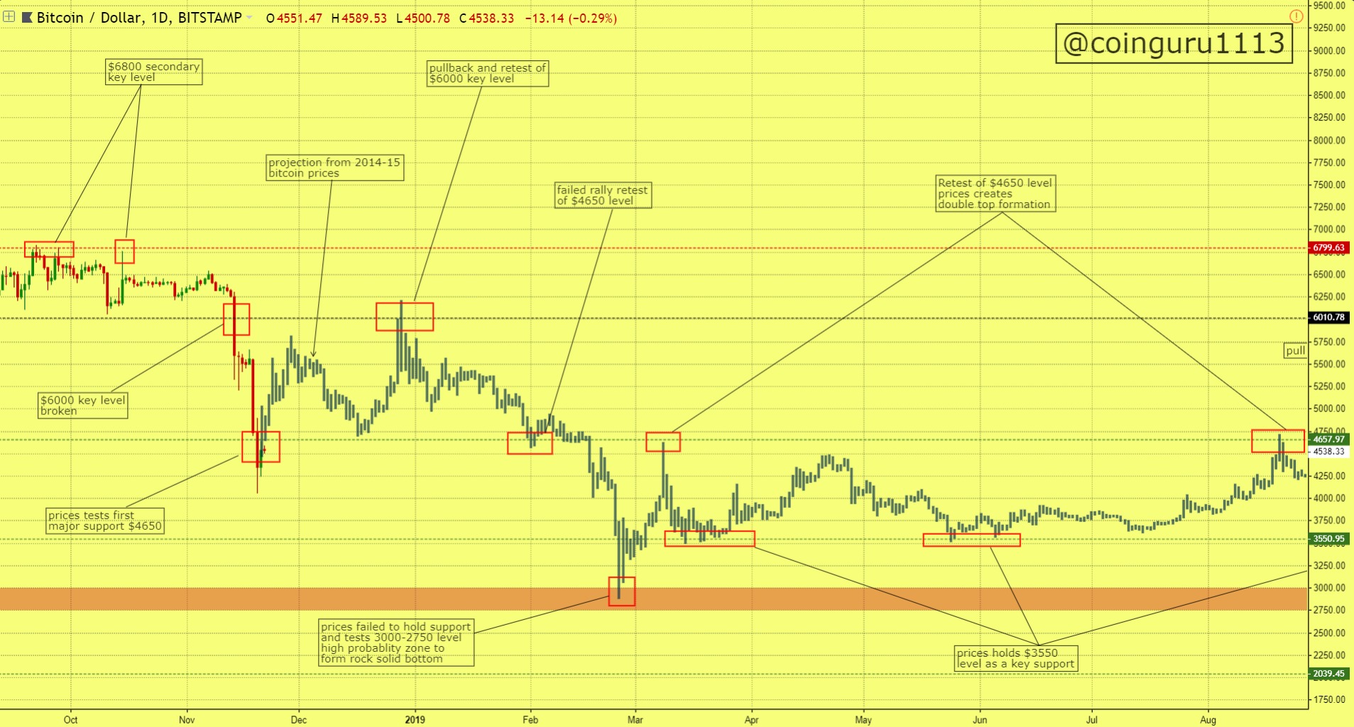 prices hold $3550 support as a key level for next few months and retest $4650 level to form a double top formation.