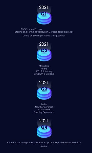 The initial BKC will be distributed during the pre-sale event, where a portion of the ETH received will be exchanged with the BKC that shipped its first "price pump" project. After the pre-sale ends, unsold BKCs will be distributed among users as a one-time subsidy. As indicated earlier, the BKC has no mining capability, the BKC limit (450,000) is fixed forever. There's no way to release more BKCs. The part of the unsold BKC will be used to add liquidity to other DEX platforms such as SushiSwap, and some of this will be distributed as an Airdrop to the first investors and media partners and some will be burned.