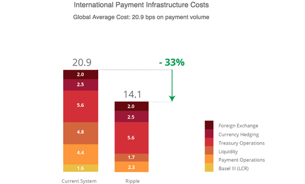 The most obvious cost reduction is in foreign exchange, Ripple acts very well in reducing the cost to transfer funds internationally, essentially rewiring the global financial network to work via XRP as a conduit will create incomparable cost-efficiency, and free up money that would otherwise be lost in transfer fees!