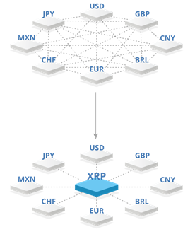 Instead of holding local currency, banks can consolidate their liquidity into XRP, pooling their assets to service international transfers reducing the need for bridge currencies.