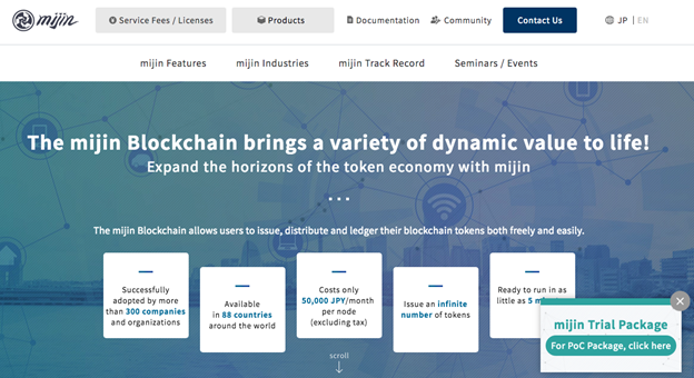 A private incarnation of the platform named Mijin is available for commercial blockchain applications and is currently being used by financial institutions, and private companies mainly in Japan initially, but also growing support internationally.