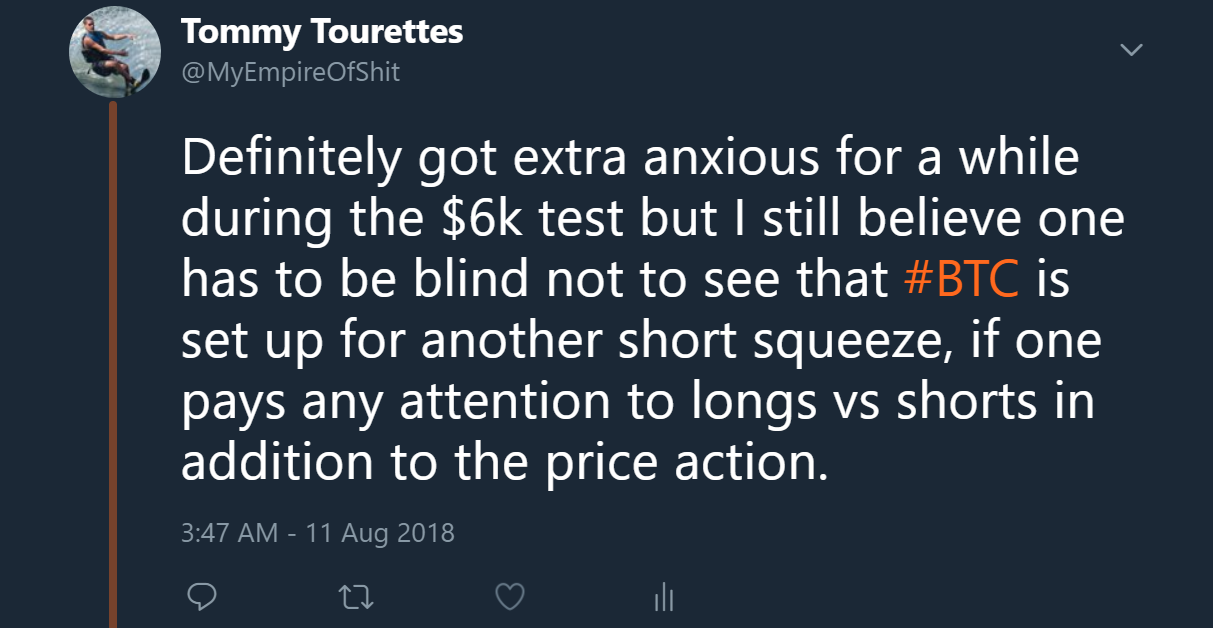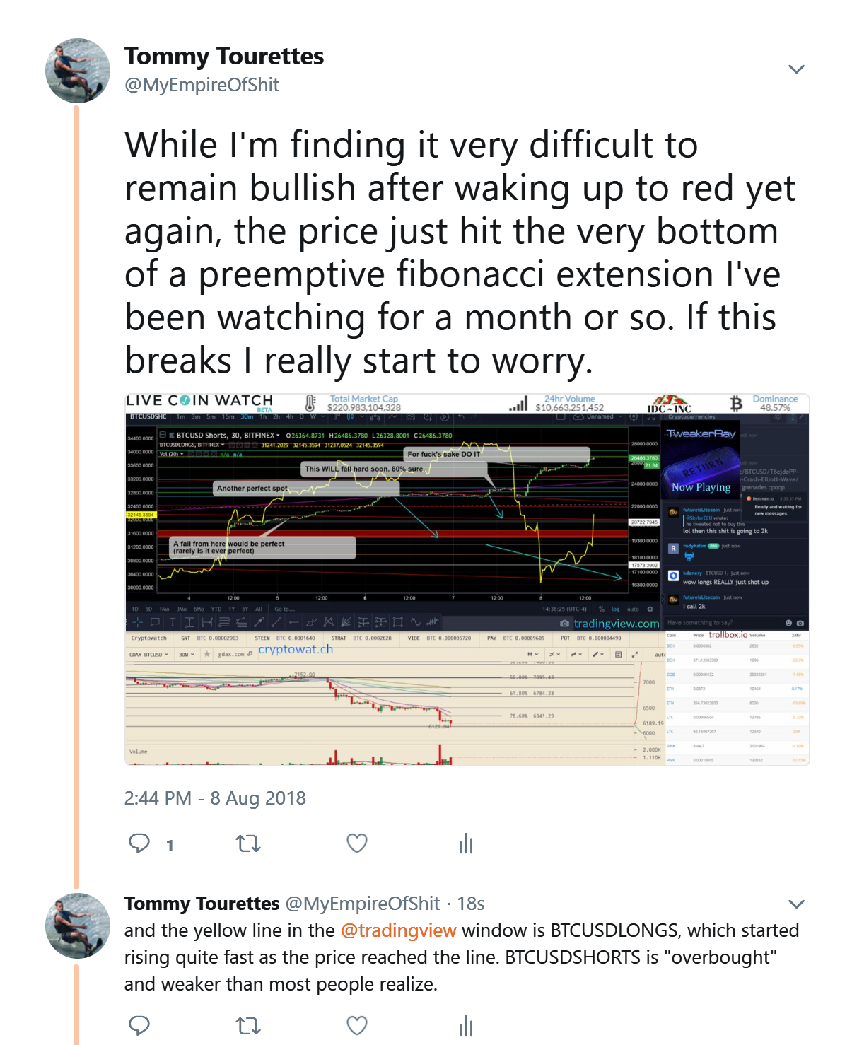 Update (August 13, 2018 02:48 EST): Oh yeah there's a gap on the 1H chart of BTCUSDSHORTS(gaps are almost always filled) 23% down from the current price. 19,500-20,000.