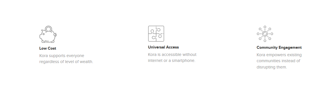 It’s not surprising that theses underserved people are unable to afford a smartphone by themselves, just question yourself, is it really reasonable to drop this people just because they cannot access a smartphone. Obviously no. That’s why Kora let people access it’s network via SMS or USSD on fairly usable phones. For those who are already updated with technology you folks have the Kora app backed by blockchain technology.