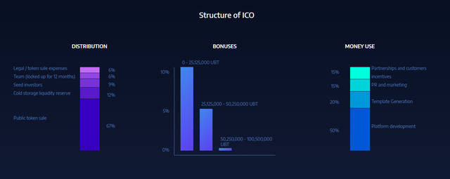 Buku putih dan semua dokumen lain dari Unibright dikerjakan dengan hati-hati. Juga dipikirkan distribusi token - semua sangat transparan.